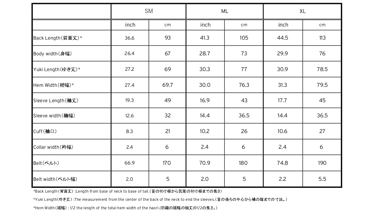 For the detailed size of each haori, please check the floor plan of the haori posted in the middle of each product detail page.